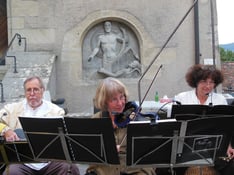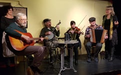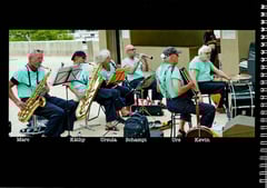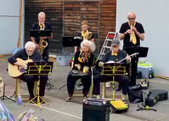 Füührwehrmusig auf der Bühne im Feuerwehrlokal Ennetbaden.